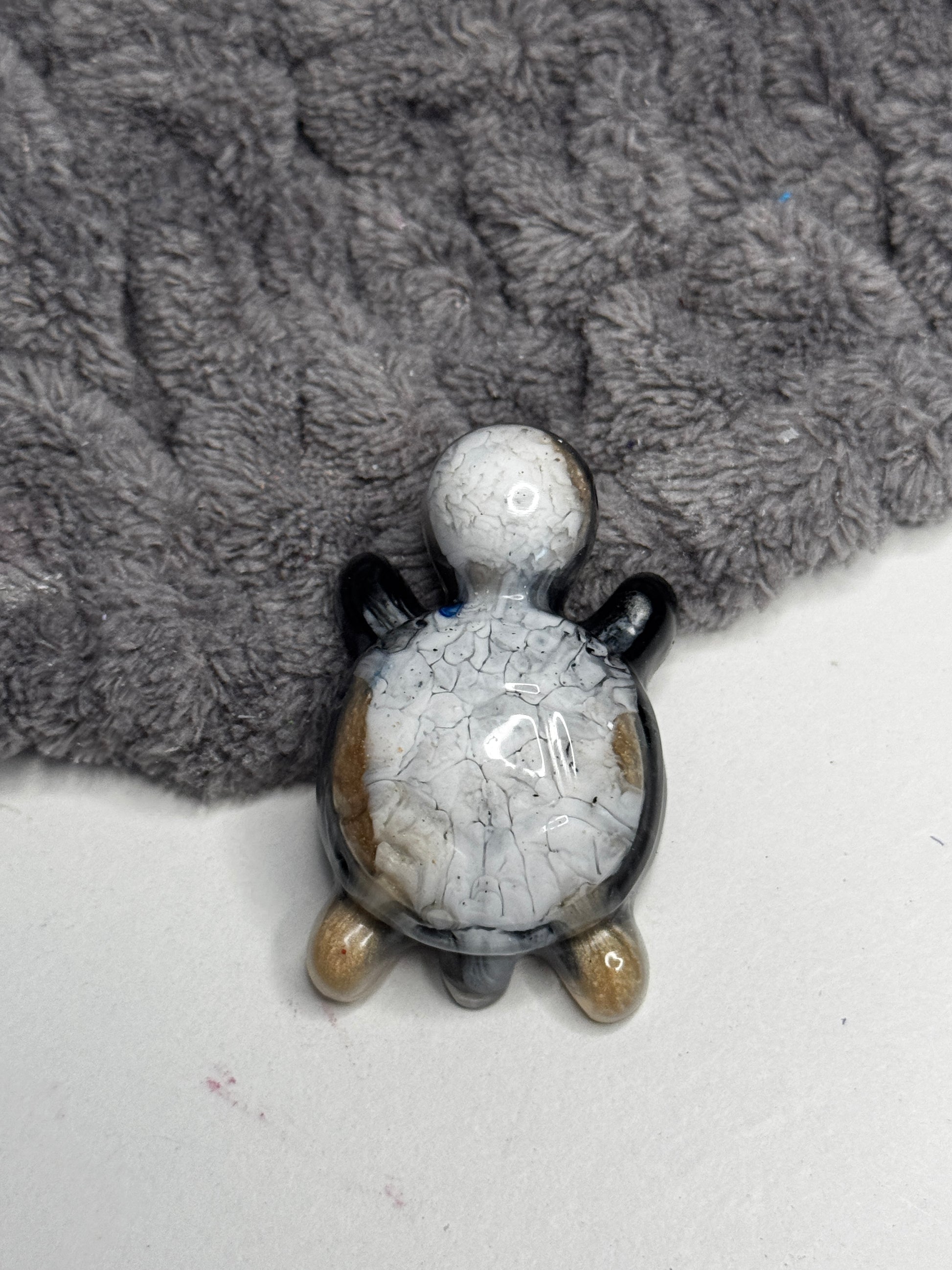 Einige Unikate sind mit Kleinteilen verziert oder bestückt (Detail, kleine Schmucksteinen…). Diese können sich durch Krafteinwirkung lösen und evtl. durch Kinder oder Tiere verschluckt werden.